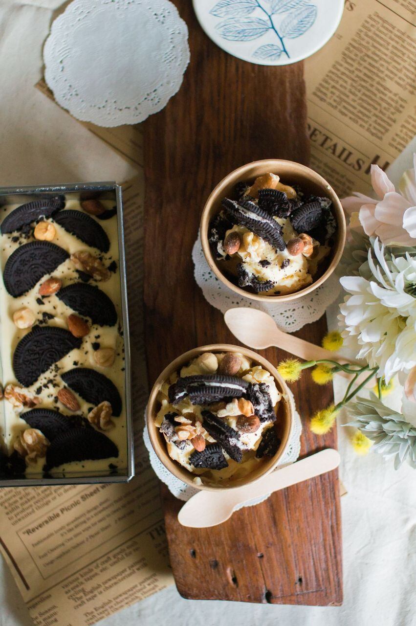 クリームチーズ(北海道十勝産)、サワークリーム、生乳、卵、ブラウンシュガー、、オレオクッキー、アーモンド、マカダミアナッツ